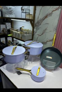 * Ergonomic gold handles: Stylish, comfortable grip, and heat-resistant.